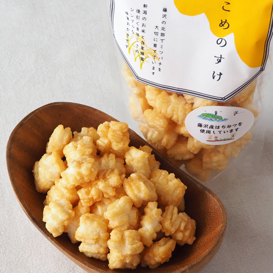 水稲もち米(新潟県産)砂糖、植物油脂、はちみつ(神奈川県藤沢産)醤油、食塩(一部に小麦、大豆を含む)